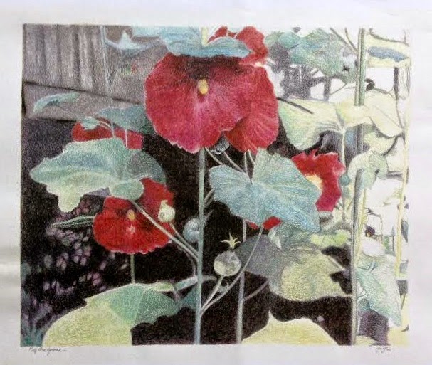 | Holly Hocks at Doc's colored pencil on watercolor paper 22" x 30" |